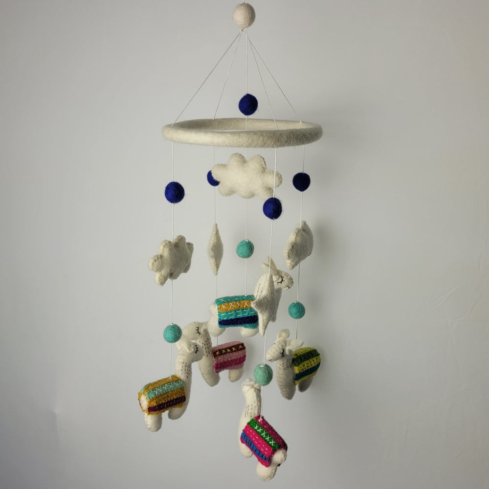 Felted wool mobile, handmade in Nepal using NZ wool